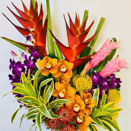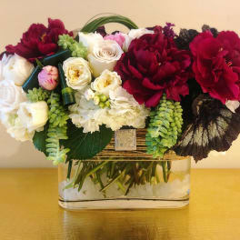 Price: $250.00 Orient Collection - Peonies and Orchids in White and Blue Product Tags: Same-day Delivery